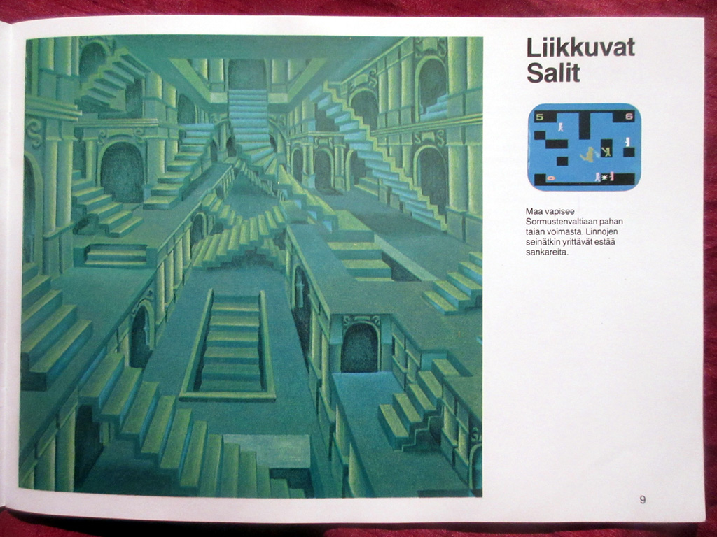 • Escheriaanisia holvastoja ja tyrmiä pelin manuaalin kuvituksissa. Liikkuvista saleista muistui myös 'Muuttuva labyrintti'-lautapeli mieleen.
